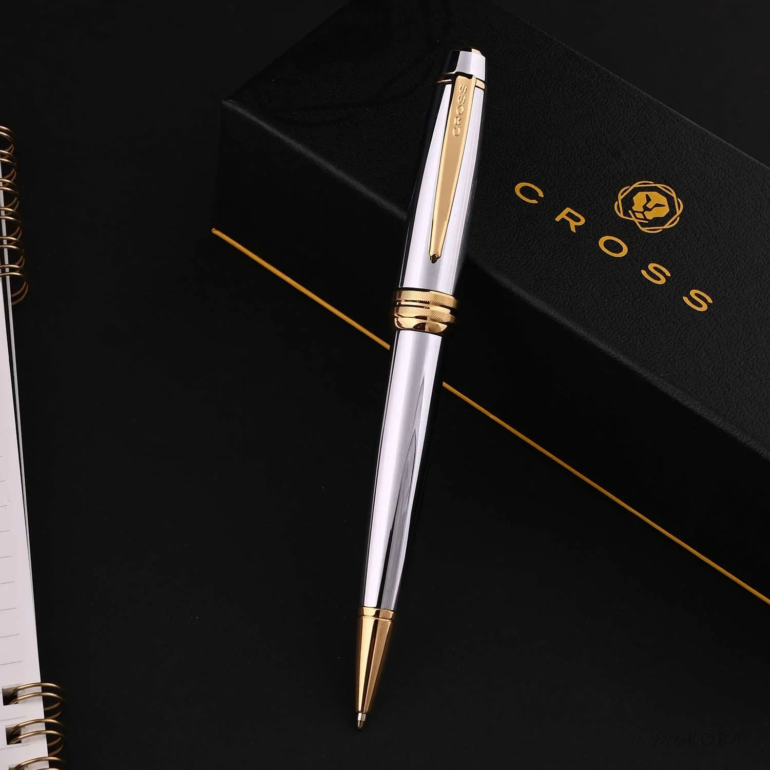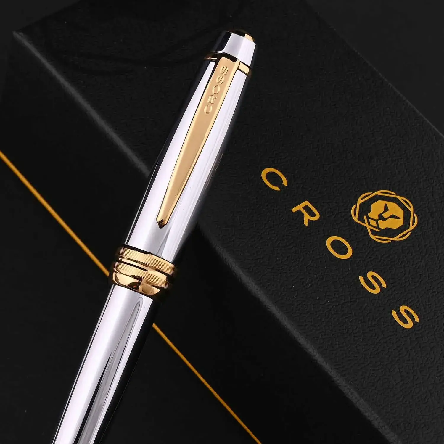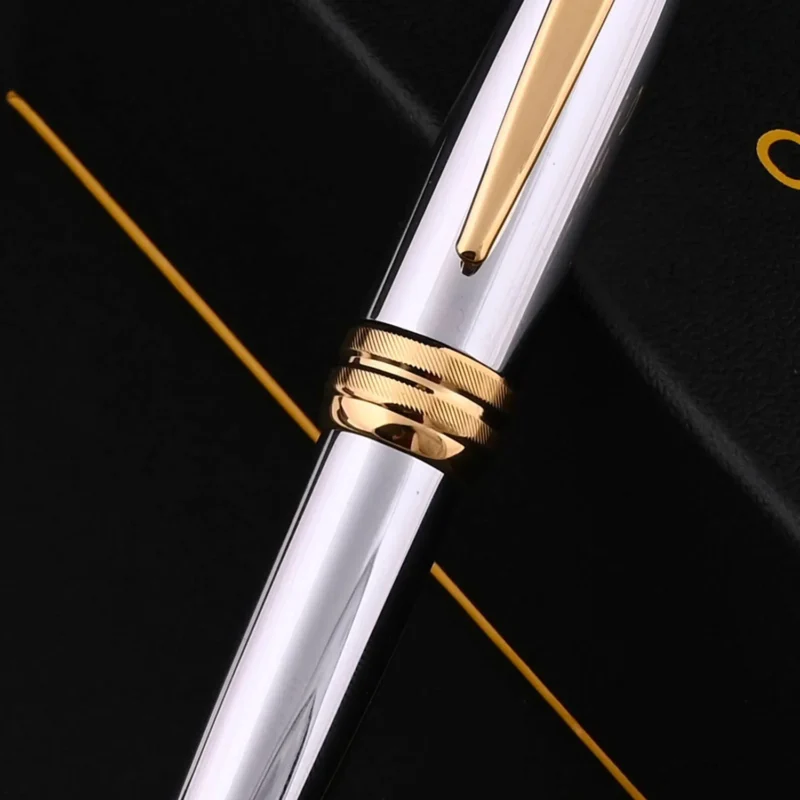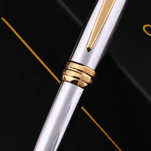 The Cross Bailey Medalist Ballpoint Pen GT is a masterpiece of timeless elegance and practical functionality. Its polished chrome barrel is meticulously paired with gleaming 23-karat gold-plated trim, creating a luxurious aesthetic that makes a statement in any professional setting. The pen’s balanced weight and ergonomic design ensure a comfortable grip, making it ideal for extended writing sessions.
