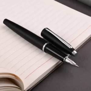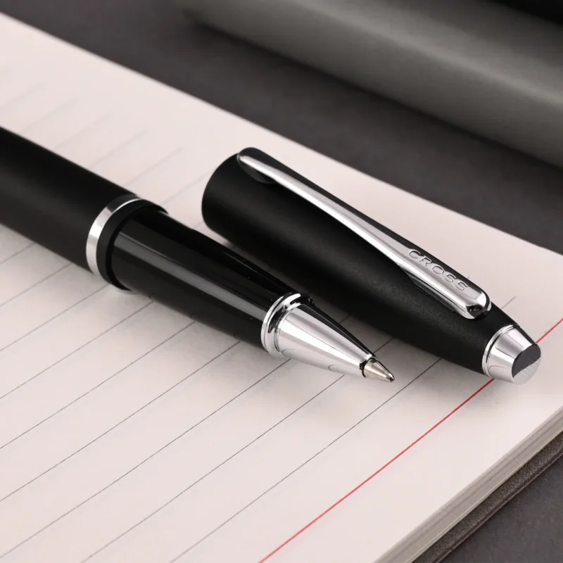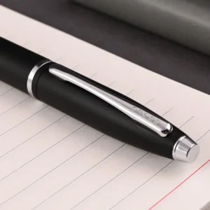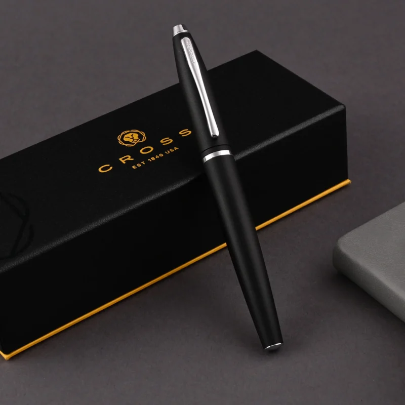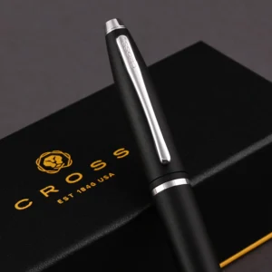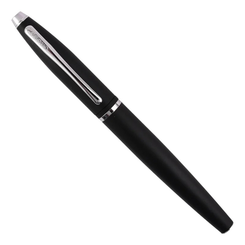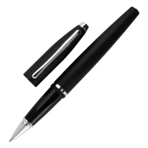 The Cross Calais Matte Black Rollerball Pen CT is a masterpiece of modern elegance and functionality. Its sleek matte black finish exudes a sophisticated, understated charm, perfectly complemented by polished chrome trim that adds a touch of refined brilliance. This pen’s streamlined, ergonomic design ensures a comfortable and well-balanced writing experience, making it ideal for both everyday use and special occasions.