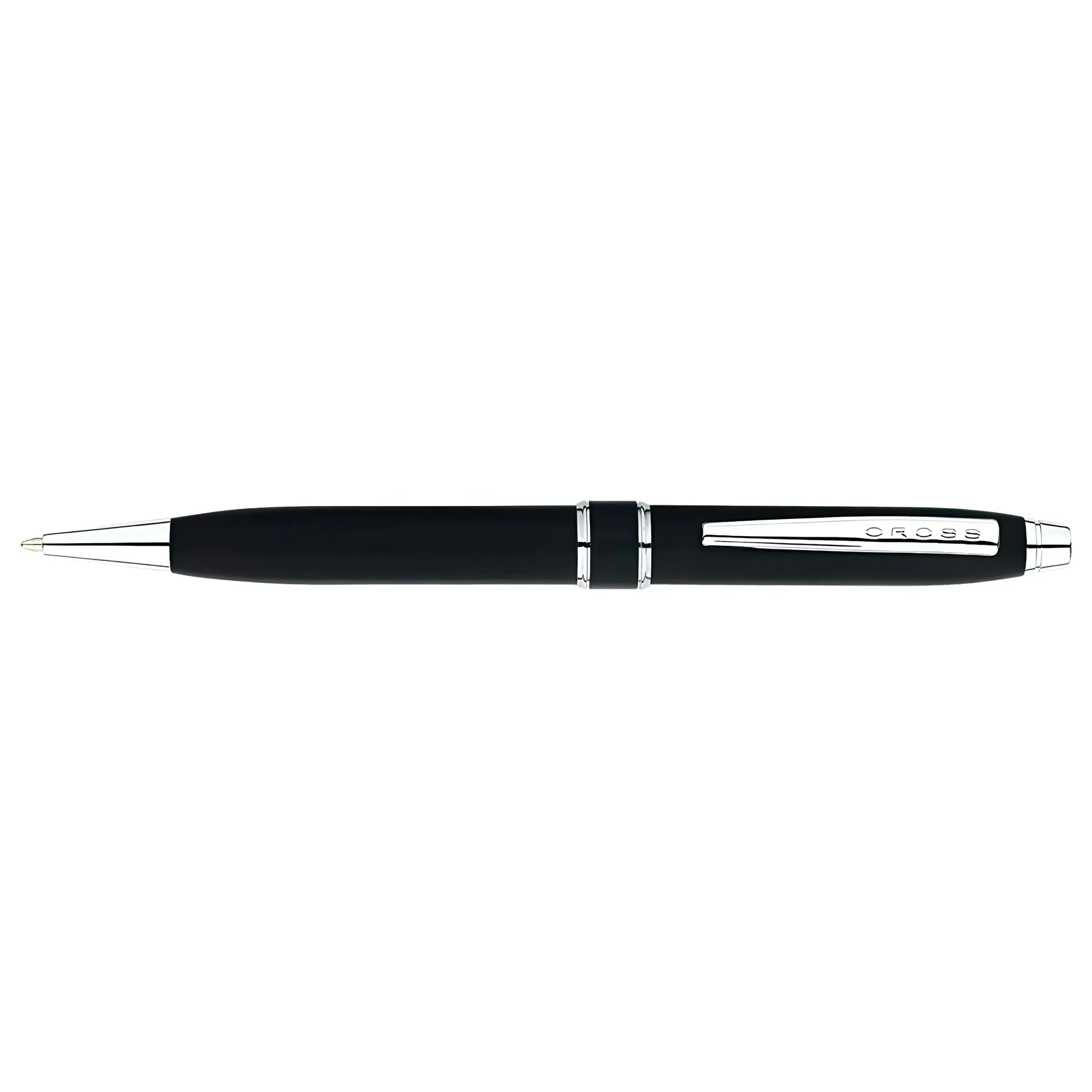 The Cross Stratford Black Ballpoint Pen CT epitomizes elegance and precision, making it an ideal choice for those who appreciate fine writing instruments. This sophisticated pen features a sleek black lacquer finish over a durable brass barrel, complemented by striking chrome trim. Its smooth twist-action mechanism ensures effortless tip extension and retraction, providing a seamless writing experience.