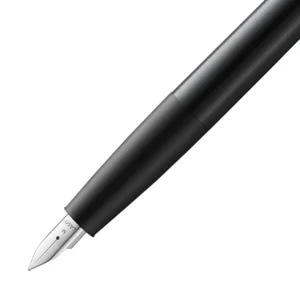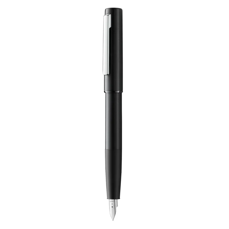 The Lamy Aion Black Fountain Pen is a sophisticated and modern writing instrument that combines sleek design with exceptional performance. Crafted from a smooth, deep-drawn matte black anodized aluminum body, the Aion features a distinctive triangular grip section that provides a secure and comfortable hold during extended writing sessions.