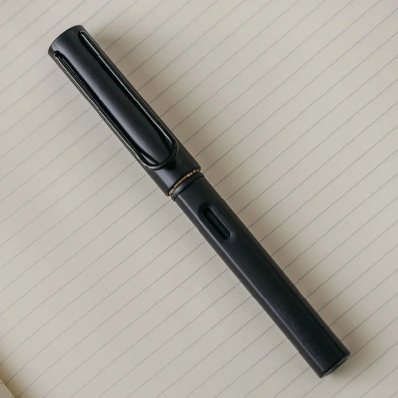 The Lamy AL-Star Black Fountain Pen is a sleek and modern writing instrument that combines classic design with a sophisticated color palette. Crafted from durable anodized aluminum in a matte black finish, the AL-Star Black features a sturdy stainless steel nib that delivers a smooth and consistent ink flow. Its distinctive translucent triangular grip section provides writing comfort, while the spring-action metal clip allows for easy attachment to notebooks or pockets. Compatible with LAMY T10 ink cartridges and the LAMY Z28 converter, the AL-Star Black is a versatile choice for both everyday use and as part of a growing pen collection.