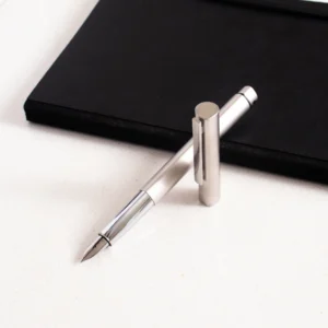 The 14K gold nib, available in fine or medium, delivers a smooth and consistent ink flow, allowing you to express your thoughts and ideas with ease. The polished stainless steel clip and chrome-plated accents add a touch of sophistication, while the contrasting grip zones create a dynamic visual appeal. Whether you’re taking notes, journaling, or simply enjoying the art of handwriting, the Lamy Ideos Palladium Fountain Pen’s striking aesthetics, high-quality materials, and reliable performance will elevate your writing experience.