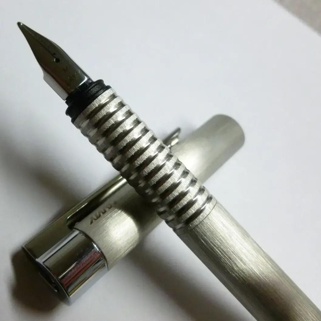 The Lamy Logo Brushed Fountain Pen is a timeless writing instrument that combines a sleek, minimalist aesthetic with exceptional performance. Crafted from a brushed stainless steel body, the Logo features a comfortable triangular grip section that provides an ergonomic hold during extended writing sessions.