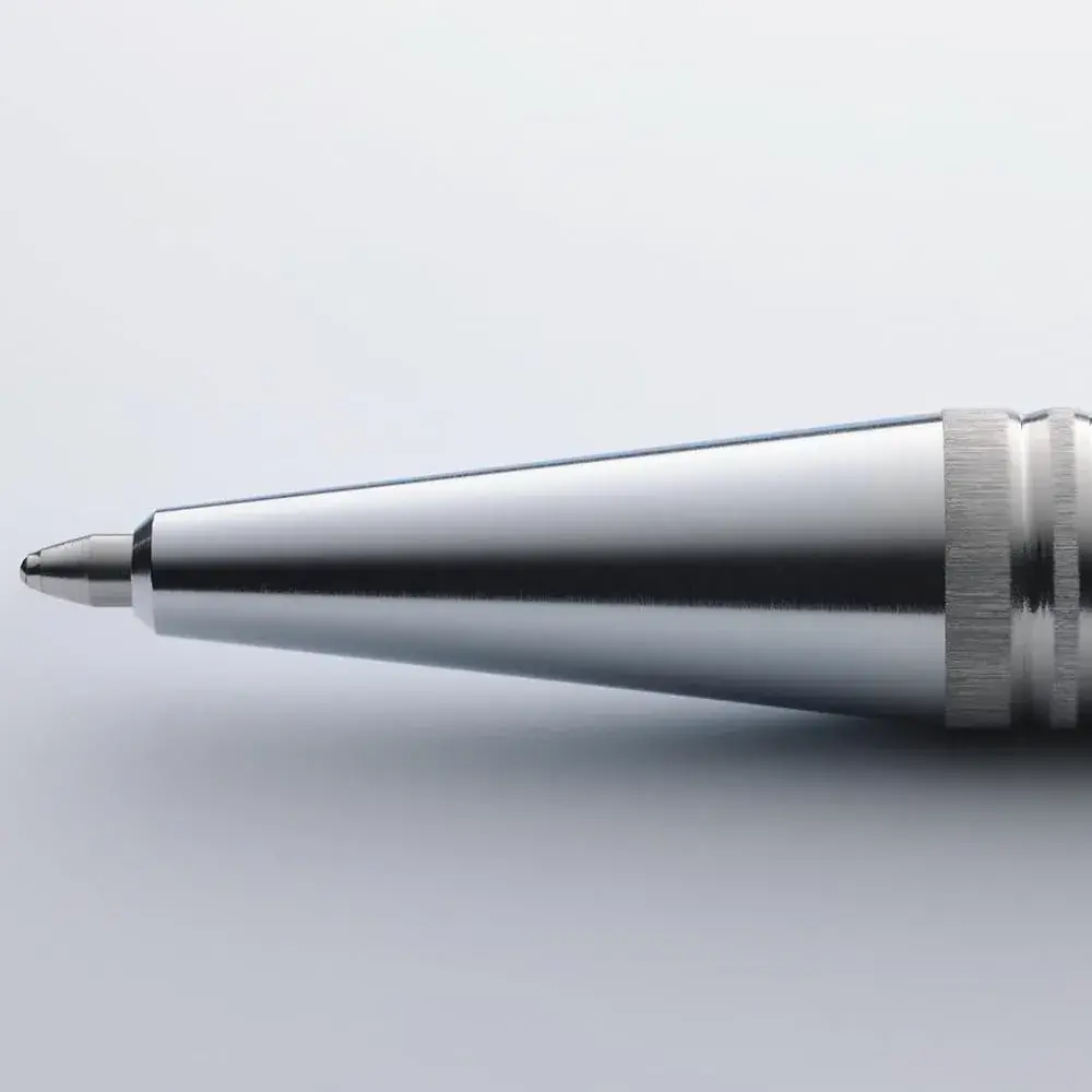 The Lamy Logo Brushed Steel Ballpoint Pen is a timeless writing instrument that combines a sleek, minimalist aesthetic with exceptional functionality. Crafted from a brushed stainless steel body, the Logo features a comfortable triangular grip section that provides an ergonomic hold during extended use.