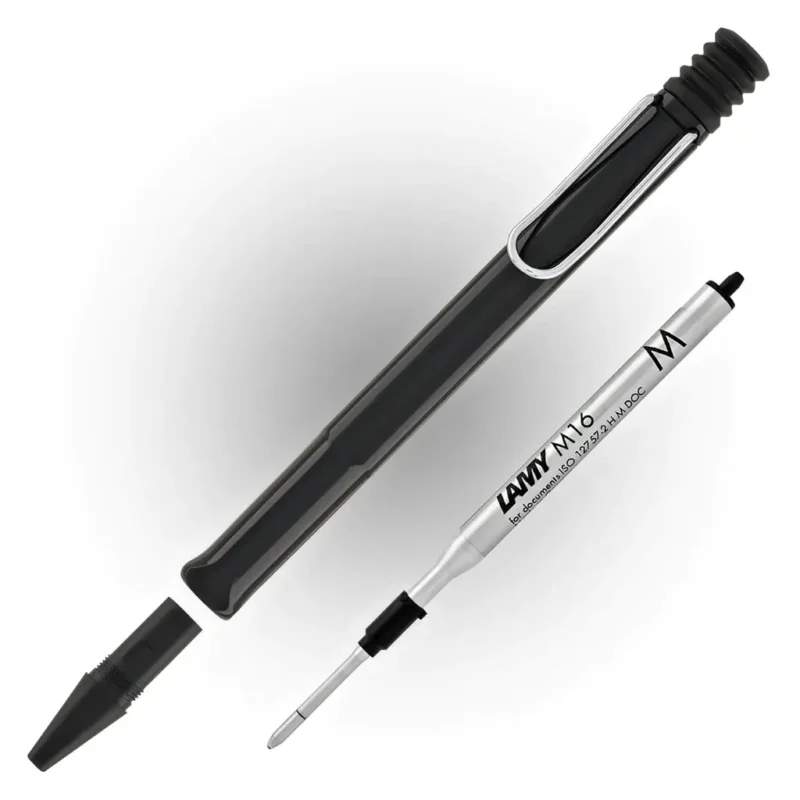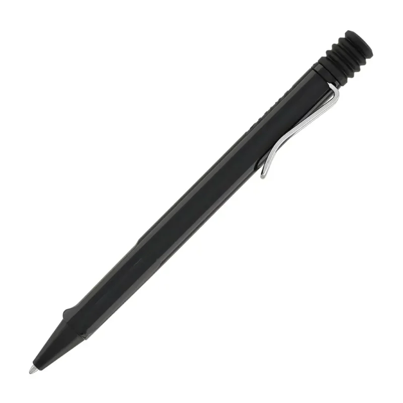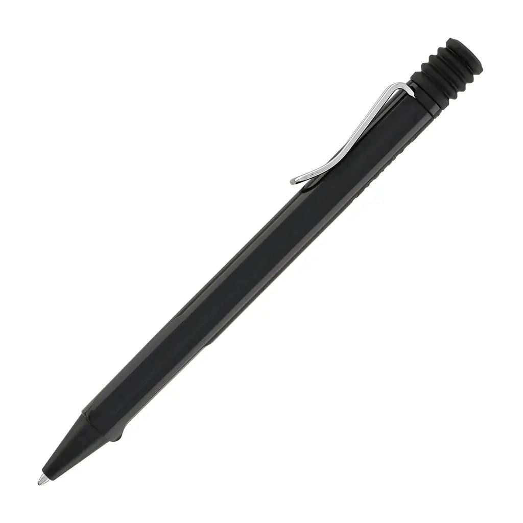 The Lamy Safari Black Ballpoint Pen is a sleek and modern writing instrument that combines the iconic Safari design with a sophisticated color palette. Crafted from durable ABS plastic in a glossy black finish, the Safari Black Ballpoint features a sturdy metal clip and an ergonomic grip section for writing comfort. It delivers a smooth and consistent ink flow, thanks to its compatible Lamy M16 giant ballpoint refill in black. The Safari Black Ballpoint Pen offers the classic Lamy