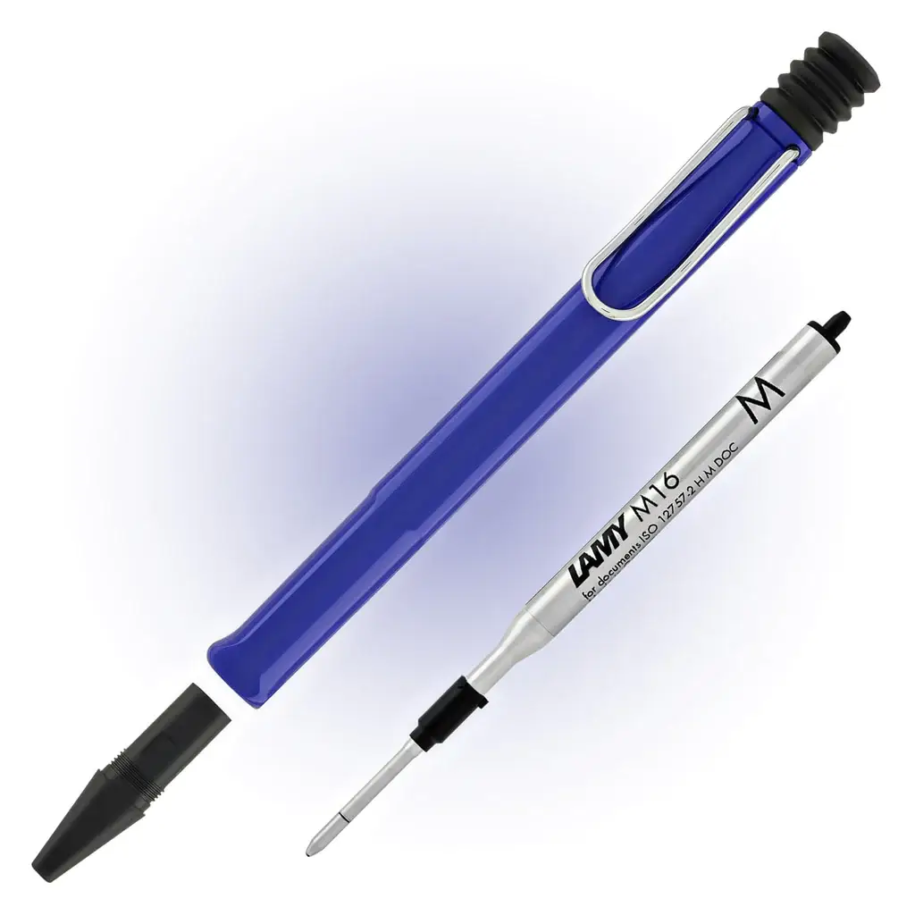 The Lamy Safari Blue Ballpoint Pen is a modern and versatile writing instrument that combines the iconic Safari design with a vibrant blue color. Crafted from durable ABS plastic in a glossy blue finish, the Safari Blue Ballpoint features a sturdy metal clip and an ergonomic grip section for writing comfort. It delivers a smooth and consistent ink flow, thanks to its compatible Lamy M16 giant ballpoint refill. The Safari Blue Ballpoint Pen offers the classic Lamy aesthetic in a convenient, non-fountain pen format that is perfect for everyday use.