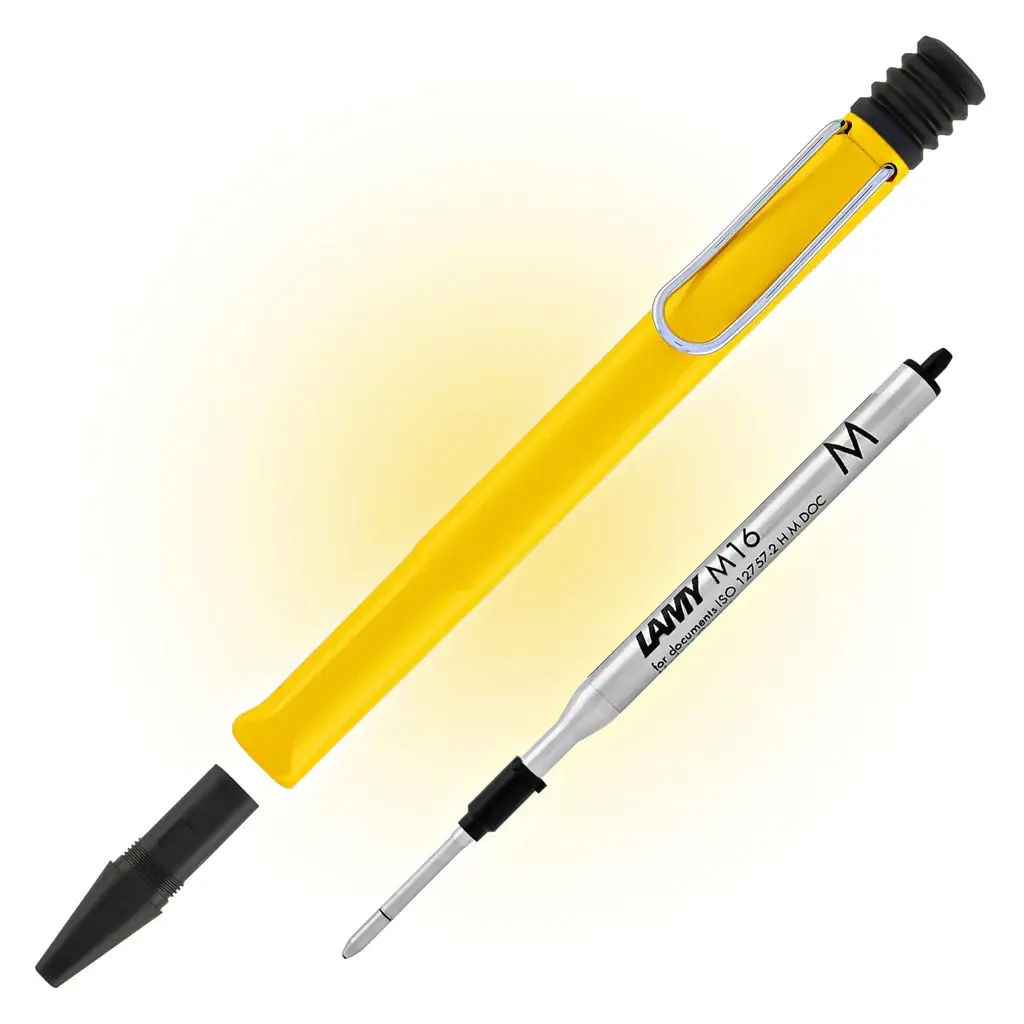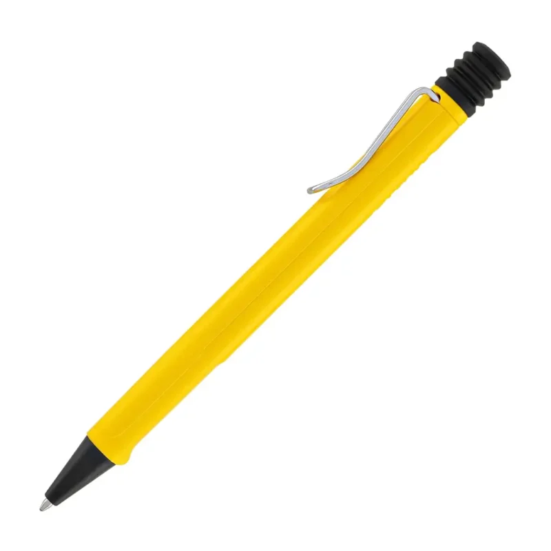 The Lamy Safari Yellow Ballpoint Pen is a modern and vibrant writing instrument that combines the iconic Safari design with a bold color. Crafted from durable ABS plastic in a glossy yellow finish, the Safari Yellow Ballpoint features a sturdy metal clip and an ergonomic grip section for writing comfort. It delivers a smooth and consistent ink flow, thanks to its compatible Lamy M16 giant ballpoint refill. The Safari Yellow Ballpoint Pen offers the classic Lamy aesthetic in a convenient, non-fountain pen format that is perfect for everyday use and adds a cheerful pop of color to your writing experience.