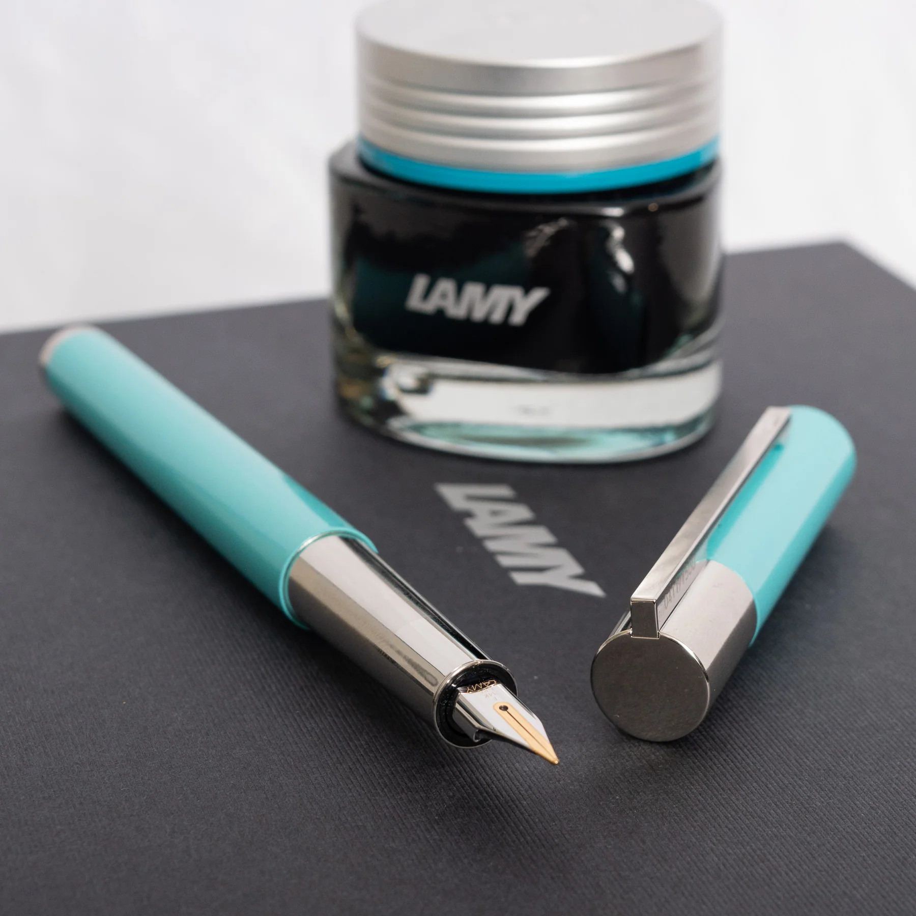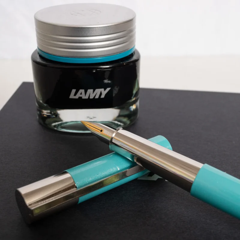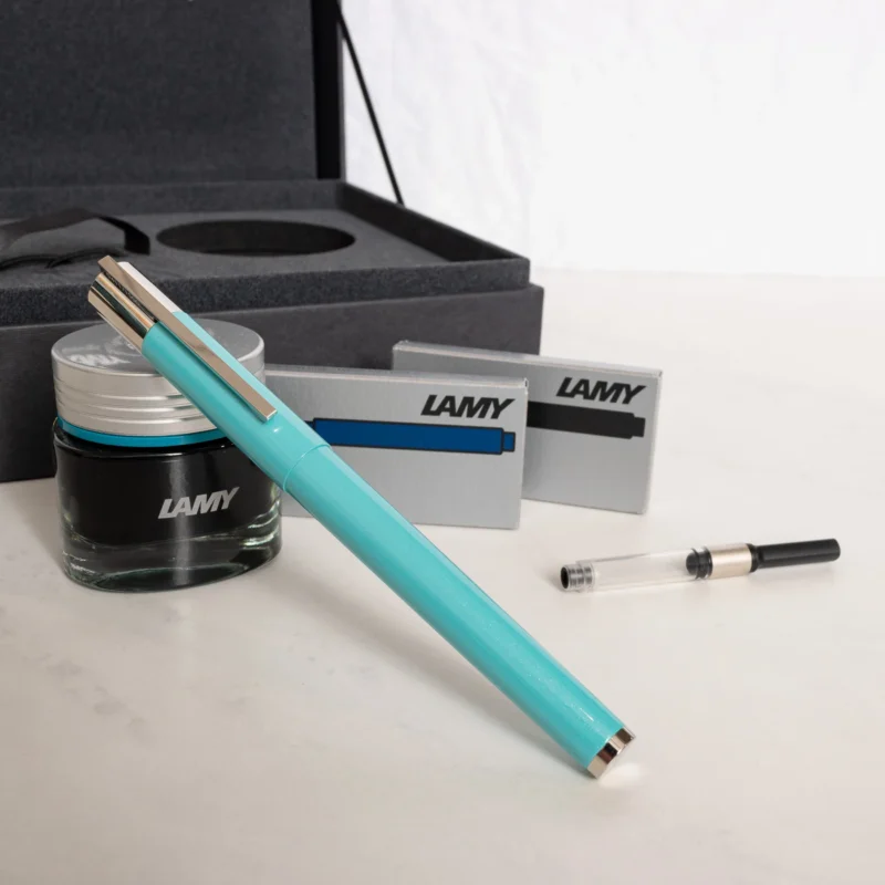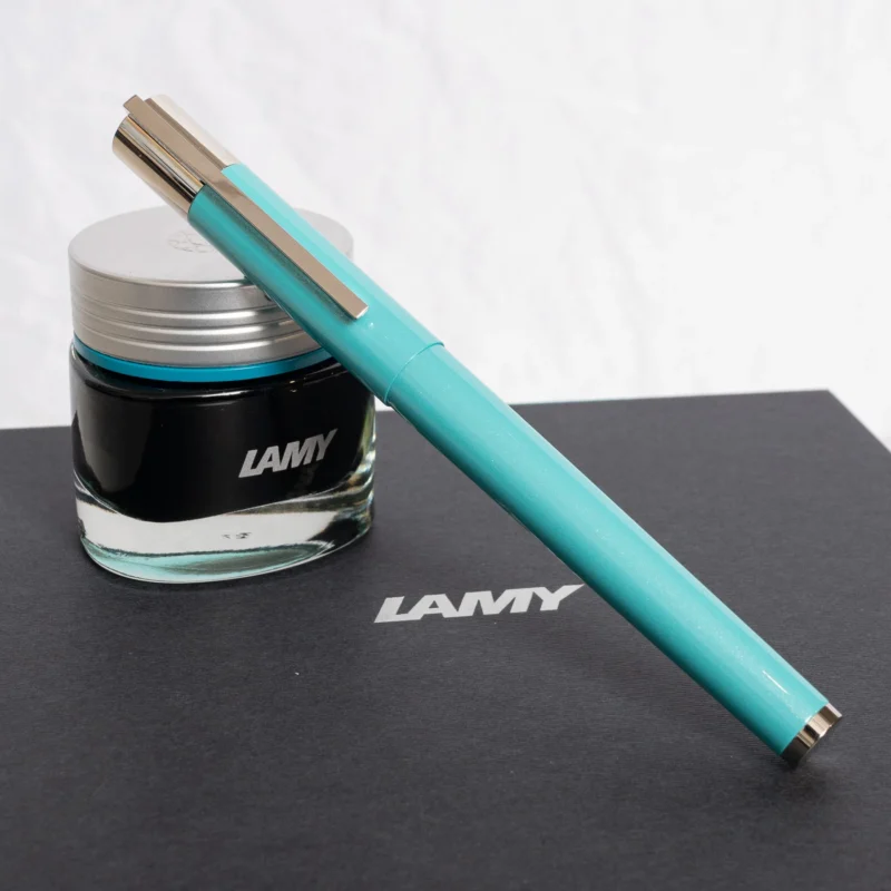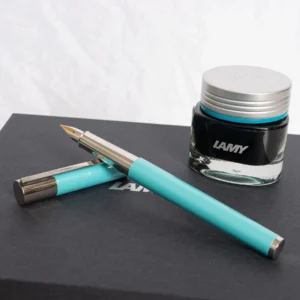 The 14-karat gold nib, available in fine, ensures a smooth and precise writing experience. Each pen is meticulously numbered and comes with a matching converter and a glass of LAMY crystal ink in brilliant amazonite, which harmonizes perfectly with the pen’s surface. This limited edition of only 1500 pieces is a testament to Lamy’s commitment to excellence in design and craftsmanship, making it a must-have for any fountain pen enthusiast or collector.