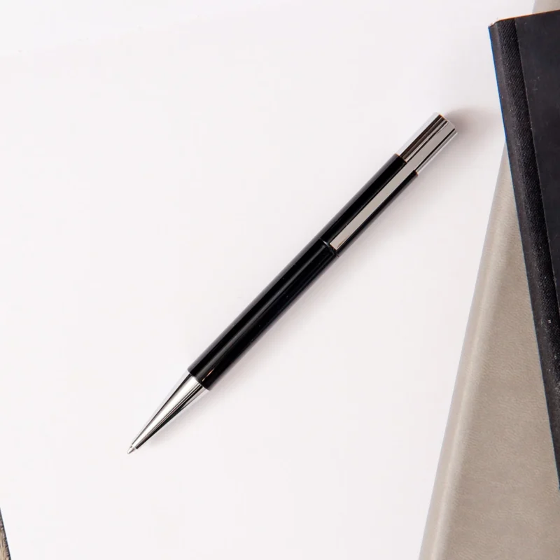 The Lamy Scala Piano Black Ballpoint Pen is a sleek and sophisticated writing instrument that combines elegant design with exceptional functionality. Crafted from a glossy black lacquered stainless steel body, the Scala features a cylindrical grip section that provides a comfortable and secure hold during extended use.