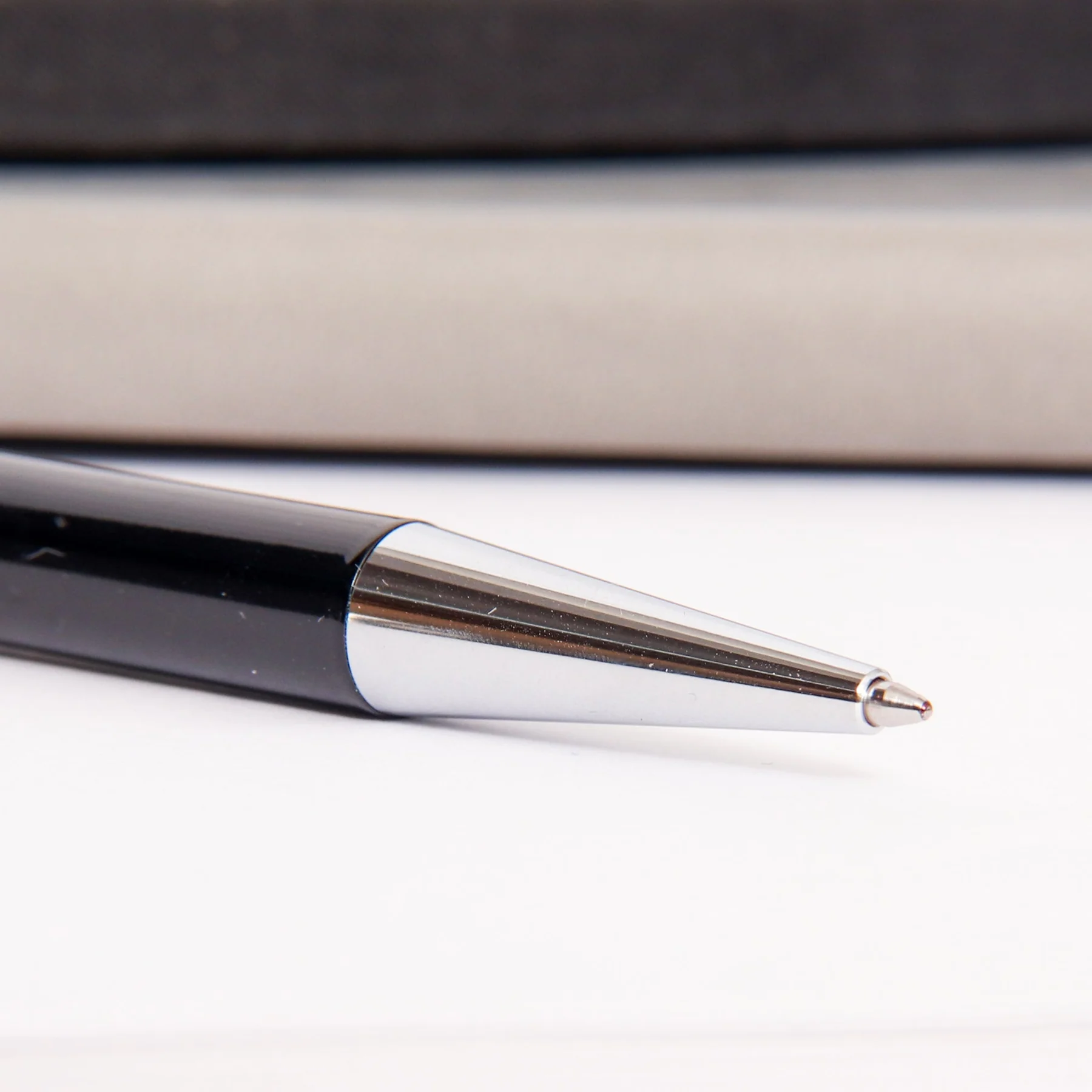 The Lamy Scala Piano Black Ballpoint Pen is a sleek and sophisticated writing instrument that combines elegant design with exceptional functionality. Crafted from a glossy black lacquered stainless steel body, the Scala features a cylindrical grip section that provides a comfortable and secure hold during extended use.