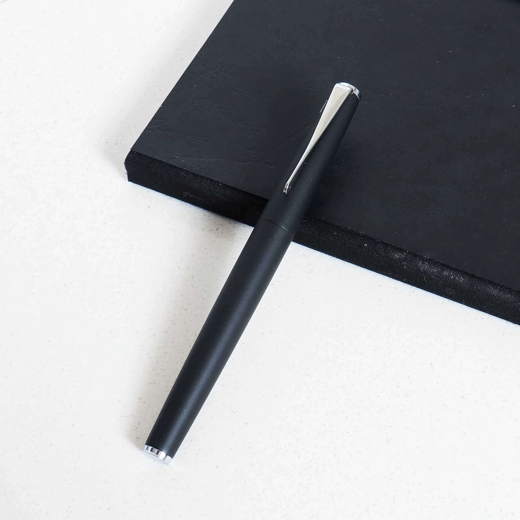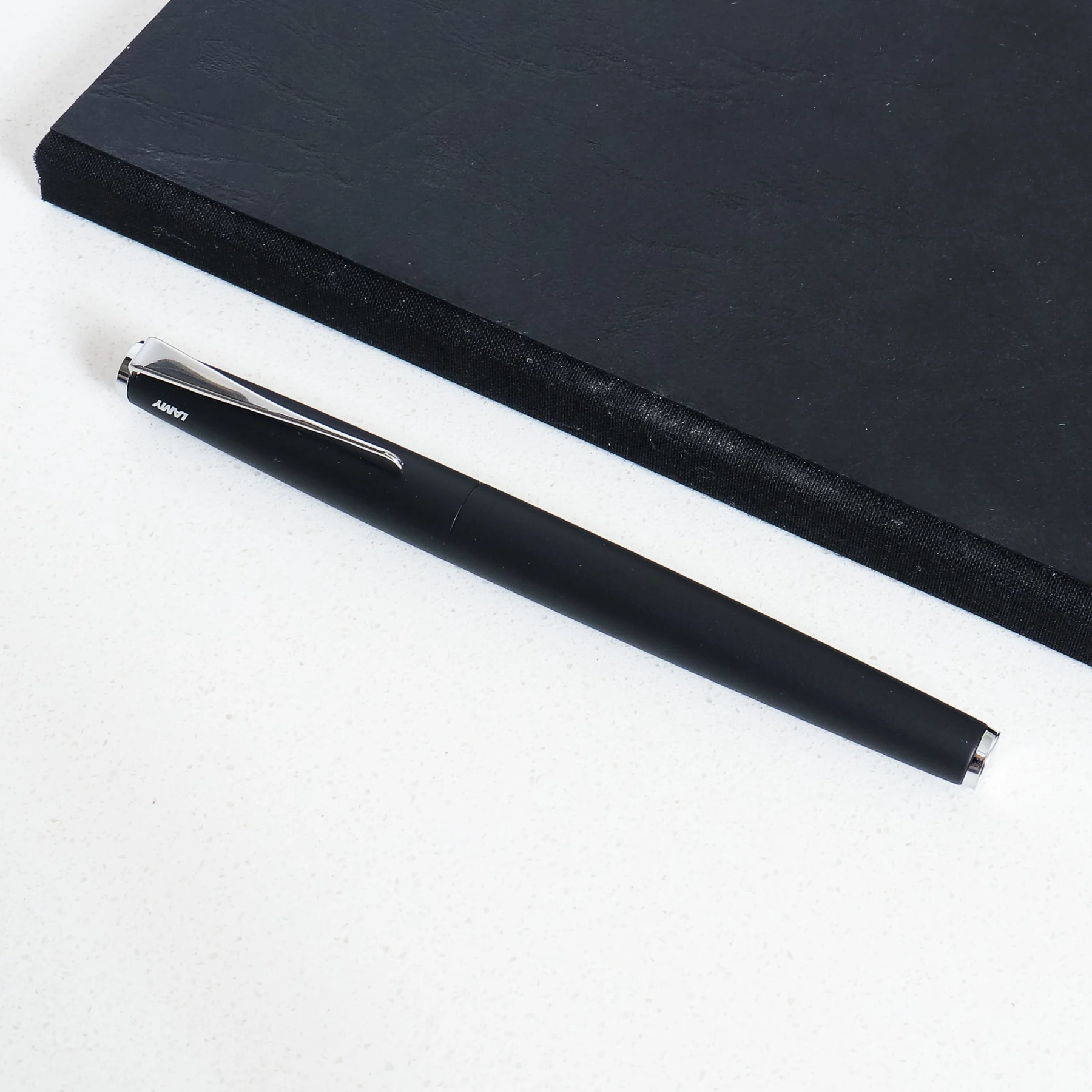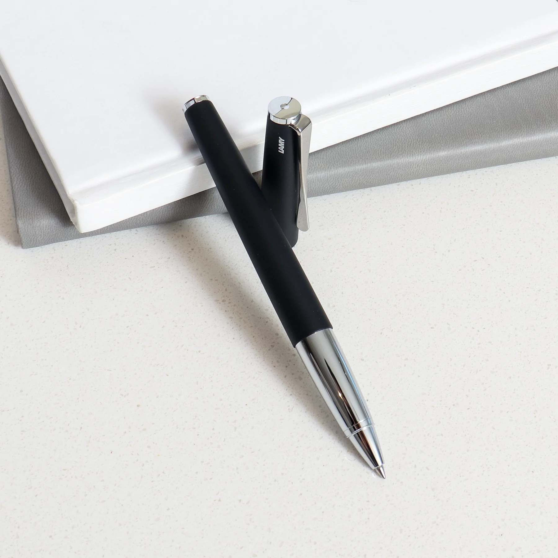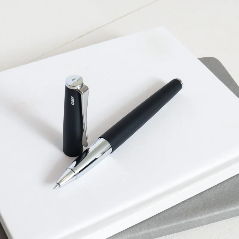 The Lamy Studio Black Rollerball Pen is a sophisticated writing instrument that combines innovative design with exceptional functionality. Crafted from a glossy black lacquer finish over a metal barrel, the Studio Black features Lamy’s iconic propeller-shaped clip that adds a touch of modern flair to the elegant, cylindrical form. Equipped with a high-quality rollerball refill, this premium pen delivers a smooth and consistent ink flow for a pleasurable writing experience. The sleek black color scheme creates a bold, understated look that is sure to appeal to both new and seasoned Lamy enthusiasts who appreciate the brand’s commitment to quality craftsmanship and design.