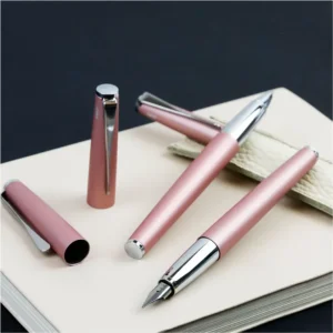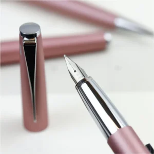 The Lamy Studio Rose Matt Fountain Pen is a stunning special edition that combines elegant design with exceptional writing performance. Crafted from matte rose gold-colored aluminum, the Studio Rose Matt features a sleek, minimalist aesthetic that is both visually striking and comfortable to hold. The pen’s iconic propeller-shaped clip adds a touch of modern flair to the design. Equipped with a polished steel nib, the Studio Rose Matt Fountain Pen delivers a smooth and consistent ink flow for a pleasurable writing experience. It comes with a LAMY T 10 blue ink cartridge and is also compatible with the LAMY Z 27 converter for bottled ink use. This limited edition rose gold finish is sure to appeal to both new and seasoned Lamy enthusiasts who appreciate the brand’s commitment to quality craftsmanship and innovative design.